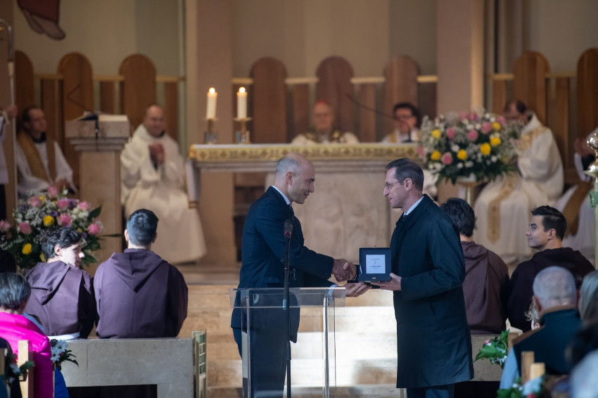A beszédet követően első alkalommal adták át a nemrégiben alapított Pasaréti Ferences Emlékplakettet, amelyet Varga Mihálynak nyújtott át az egyházközség képviselője, Mráz Dániel. Amint kifejtette, a miniszternek és mindazoknak szól ez az elismerés, akik lehetővé tették, hogy új térrel bővüljön a közösség. A plakettet Jézus nevének kezdőbetűi (IHS) díszítik.